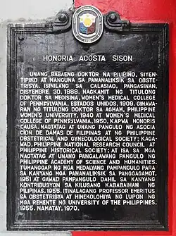 - ^ "Philippines - Postage stamps - 1854-2013: 1978 Dr. Honoria Acosta Sison (First Filipino Woman Physician) Commemoration". Stampworld.com. Retrieved 2014-03-11.