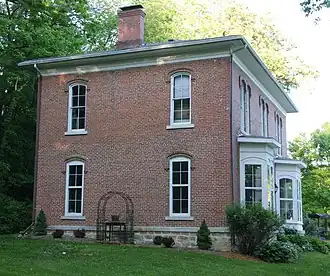 The Horn House is a historic residence located northwest of Decorah, Iowa, United States. The significance of this house is the unique architectural combination of the Italianate and Georgian styles found in Iowa.[2] The latter style is found in the symmetrical composition of the attached service wing. The two-story brick main block features a low-hipped roof, wide eaves and a plain wood cornice.