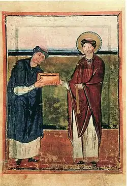 The Solothurn Central Library houses the so-called Hornbach Sacramentary, a codex of the 10th century, made by the Hornbach scribe monk Eburnant on behalf of his abbot Adalbert (approx. 970 to 990).[4] Another precious manuscript preserved in Hornbach during the Middle Ages is the Codex Laudianus, a bilingual codex from around 600, which contains the Acts of the Apostles in Greek and Latin. It probably came to the continent with the British missionaries in the 8th century and came into the possession of William Laud ("Laudian Acts", today Oxford, Bodleian Library, Msc. Laud. Gr. 35) at the time of the Thirty Years' War.[5][6]