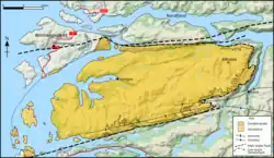 - ^ a b Fossen, H.; Khani, H.F.; Faleide, J.I.; Ksienzyk, A.; Dunlap, W.J. (2016). "Post-Caledonian extension in the West Norway –northern North Sea region: the role of structural inheritance" (PDF). In Childs, C.; Holdsworth, R.E.; Jackson, C.A.-L.; Manzocchi, T.; Walsh, J.J.; Yielding, G. (eds.). The Geometry and Growth of Normal Faults. Geological Society, Special Publications. Vol. 439. pp. 465–486. doi:10.1144/SP439.6. S2CID 132839546.