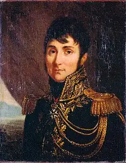 Louis Doguereau was appointed major when the regiment was created in 1806. On 13 September 1808, Augustin Marie d'Aboville became major of the Garde horse artillery. He stood out at the Battle of Wagram, where his right arm was blown off by a cannonball. As a reward, he was promoted to brigadier general on 9 July 1809, made a baron of the Empire and appointed commandant of the La Fère artillery school.[31] Six days later, Jean-Jacques Desvaux de Saint-Maurice was appointed major of the regiment.[25] On 6 November 1813, Charles Pierre Lubin Griois became major of the regiment, a position he held until the Guard artillery was disbanded on 12 May 1814.[32]