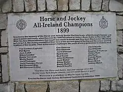 The Horse and Jockey Senior Hurling team, representing County Tipperary, won the 1899 All-Ireland Senior Hurling Championship Final at Jones's Road (now Croke Park) in Dublin, beating the team from Blackwater which represented County Wexford.[6] The match was not actually played in 1899, but actually played two years later, on 24 March 1901.