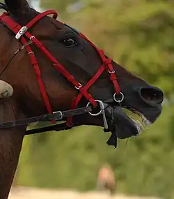 If a bit is fitted to a horse, along with a bridle, the normally metal bar of the bit lies in the interdental space between the incisors (or canines, where present) and premolars. If the bridle is adjusted so that the bit rests too low, or too high, it may push against the teeth and cause discomfort.
