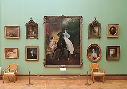Since then, "Horsewoman" has been part of the Tretyakov collection. Subsequently, the painting was exhibited at a number of exhibitions, including Bryullov's personal exhibition, held in the Tretyakov Gallery in 1950, and at the exhibition of the Academy of Arts of the Soviet Union, held in Moscow in 1983–1984.[9] It was also one of the exhibits of the exhibition dedicated to the 200th anniversary of Bryullov's birth, which was held from December 1999 to May 2000 in the Mikhailovsky Palace, part of the State Russian Museum in St. Petersburg, and then from June 2000 to January 2001 in the New Tretyakov Gallery in Krymsky Val.[9] Nowadays the painting "Horsewoman" is exhibited in room 9 of the main building of the Tretyakov Gallery in Lavrushinsky Lane.[2][36]