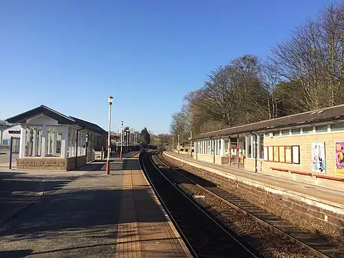 Horsforth railway station serves the town of Horsforth in West Yorkshire, England. It is a stop on the Harrogate Line, 5.75 miles (9 km) north-west of Leeds, and is the final stop in the West Yorkshire Metro regulated area towards Harrogate.