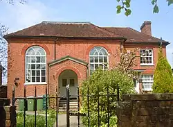 Horsham Friends Meeting House is one of three surviving 18th-century Friends meeting houses in Sussex, along with Herstmonceux (1734) and Lewes (1784).[14] It was designated a Grade II listed building on 26 July 1974,[15] and is registered for worship in accordance with the Places of Worship Registration Act 1855; its number on the register is 4666.[16] It is very close to Horsham Unitarian Church, another Grade II-listed place of worship built in 1721.[17] The meeting house is one of eight in the West Weald area, covering northwestern West Sussex and southern Surrey.[18] There are services each Sunday morning and Wednesday lunchtime.[19]