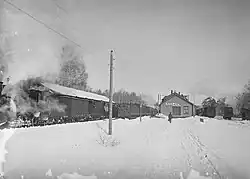 Initially the line had four trains per direction per day, increasing to seven in 1884. It reached eleven during the 1920s and peaked with thirteen from 1946.[16] Travel time was initially 16 minutes between Skoppum and Horten.[17] The Horten Line was served with the same rolling stock as the Vestfold Line. This included steam locomotives including the Class V, Class XIII and Class XXIII.[18] From 1930 four Bmc Class 1 gasoline multiple units were delivered to the Vestfold Line, and these were frequently used on the Horten Line. A used gasoline multiple unit was taken over from the Tønsberg–Eidsfoss Line when it closed in 1938, and a Cmbo Class 1 from the Flekkefjord Line when it was gauge converted in 1944.[19]