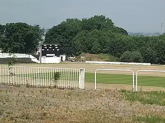 The cricket pitch remains intact, but the adjoining football stadium has been demolished and replaced with a gym and cricket nets. When the ground was at its peak both the adjacent grounds shared a now-demolished double-sided grandstand designed by noted football architect Archibald Leitch, similar to the joint rugby-and-cricket grounds at Headingley Stadium in nearby Leeds.