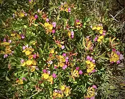 Hosackia gracilis, synonym Lotus formosissimus, is a species of legume native to western North America from British Columbia through Washington and Oregon to California. It was first described by George Bentham.[1] It is known by the common names harlequin lotus[2] and seaside bird's-foot trefoil.[3] It grows in moist spots in the coastal mountains and down to the oceanside bluffs. It is a perennial herb growing upright or spreading to about 0.5 m in maximum length. It is lined with leaves each made up of a few oppositely arranged oval leaflets up to 2 cm long. The inflorescence is made up of several pealike flowers each 1 to 2 cm long. The flower has a bright yellow banner, or upper petal, and bright pink or white lower petals. The fruit is a legume pod 2 to 3 cm long.