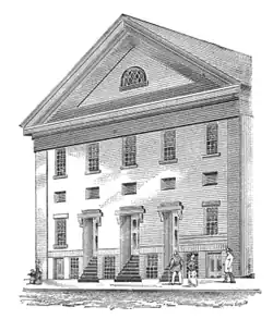 Hosea Ballou was born in Richmond, New Hampshire, to a family of Huguenot origin. The family claimed to be of Anglo-Norman heritage. The son of Maturin Ballou, a Baptist minister, Hosea Ballou was self-educated, and devoted himself early on to the ministry. In 1789 he converted to Universalism, and in 1794 became pastor of a congregation in Dana, Massachusetts.[1] Ballou was also a high-ranking freemason, who attained the position of Junior Grand Warden of the Grand Lodge of New Hampshire in 1811.[2]