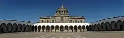 The Hospicio Cabañas (Spanish pronunciation: [osˈpisjo kaˈβaŋas]) or Cabañas Museum in Guadalajara, Jalisco was one of the oldest and largest orphanage and hospital complexes in the Americas. Now turned into a museum, the main hall hosts the magnum opus frescoes of muralist painter José Clemente Orozco. The place was designated a UNESCO World Heritage Site in 1997.