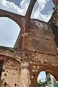 Already a ruin in 1908 when part of its façade collapsed, the hospital exhibited a combination of Gothic and Renaissance elements, with some considerable Mudéjar influence, as was typical of 16th Century Santo Domingo buildings. For example, the interior arches—which supported Gothic rib vaults—were pointed on the second story yet barreled on the ground floor. The vanguardist plan of the San Nicolás de Bari hospital served as a model for other hospitals throughout Spanish America, namely the Hospital de la Concepción undertaken in Mexico by Hernando Cortés in 1524.[7]