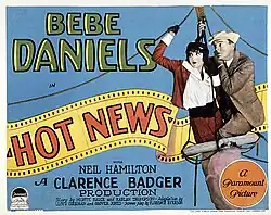 Hot News is a 1928 American silent comedy film produced and distributed by Paramount Famous Lasky Corporation, an amalgamation of Famous Players–Lasky and Paramount Pictures. Clarence Badger directed and Bebe Daniels starred.[1][2]