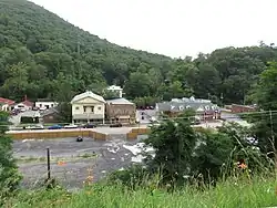 Hot Springs was once the terminus of the Chesapeake & Ohio Railroad's Hot Springs Branch, which extended from Covington in Alleghany County to Hot Springs in large part passenger service to serve the resort in Hot Springs, though other customers were served, including lumber companies.[10] There was a turntable in Hot Springs that reversed the train for the return trip back. The C&O once considered extending the line into West Virginia to serve the logging industry, but decided to build its Greenbrier Division in West Virginia instead.[11]