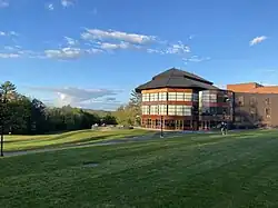 The school overlooks the Berkshires on a rural, 827 acres (3 km2) campus featuring 12 single-sex dorms and one all-gender dorm,[106] two lakes, a nine-hole golf course, an educational farm,[107] and one forest.[3] The Main Building serves as the academic and social center, featuring 30 SmartBoard classrooms, the Edsel Ford Memorial Library with 87,000-volumes occupying 25,000 square feet, and dining halls.[108]