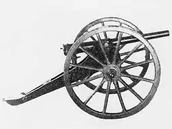 The Hotchkiss gun can refer to different types of the Hotchkiss arms company starting in the late 19th century. It usually refers to the 1.65-inch (42 mm) light mountain gun. There were also navy (37 & 47 mm) and 3-inch (76 mm) Hotchkiss guns. The 42 mm gun was intended to be mounted on a light carriage or packed on two mules to accompany a troop of cavalry or an army travelling in rough country.