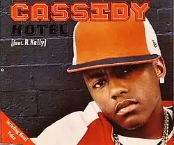 "Hotel" is a song by American rapper Cassidy, released by J Records and Swizz Beatz's Full Surface Records as his commercial debut single on September 29, 2003. The song also serves as the lead single from his debut album, Split Personality. The track was produced by Swizz Beatz and features R. Kelly on featured vocals. "Hotel" reached number four on the US Billboard Hot 100 and number three on the UK Singles Chart.