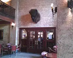 In the 1970s, an initial round of renovations to the first floor upgraded the historic Bacchus Pub and added a fine dining Italian-style restaurant. In 1982, a new owner renovated the entire hotel and converted the upper floors to residential condominiums.[3] After some years of decline and a series of owners, in 2004, David Loseff, a private equity investor and part-time Bozeman resident of 14 years, obtained a majority share in the building from a previous owner who had obtained the building in 1999. Loseff took over management and began a new round of renovations to the hotel. He initially brought in live music, upgraded the Robin Lounge (now the bar of Ted's), and operated a casual restaurant while locating new tenants to run the restaurant and the Bacchus Pub.[6] Ultimately, Ted's Montana Grill, owned by media mogul Ted Turner, opened in June 2008.[7] To accommodate the new venture, the old restaurant space as well as the former Robin Lounge were remodeled and reconfigured,[8] so that Ted's now encompasses 4,800 square feet (450 m2).[7] The Bacchus Pub, an institution throughout the history of the hotel, had been closed for almost four years, but was renovated and reopened under its current management in December 2008.[9]