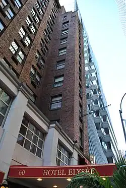 Hotel Elysée is a hotel at 60 East 54th Street (between Madison and Park Avenues) in Midtown Manhattan, New York City. The hotel was established by Swiss-born Max Haering in 1926 as a European-style hotel for the carriage trade.[1]