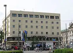 The hotel is located in the Munich city district named Ludwigsvorstadt, just few meters west of the historic square named Karlsplatz (Stachus). Originally, a roundabout similar to the east side of the square was planned, yet it was never realized. The hotel is situated in the apex of the proposed half-circle across from the Karlstor.