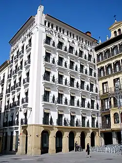 Hotel La Perla (Spanish: Gran Hotel La Perla) is a five-star hotel in Pamplona, Spain and is located in the Plaza del Castillo (Castle Square), with one side facing Estafeta Street, which is a main route in the Running of the Bulls. The balconies of the hotel are among the most coveted sites from which to view the event.[1]