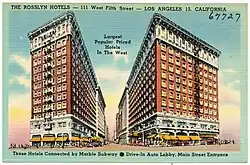 The Hotel Rosslyn Annex is a historic building in Los Angeles, California built in 1923 at the corner of 5th and Main streets. The structure was designed by the firm Parkinson & Parkinson in the Beaux Arts style and listed on the National Register of Historic Places in 2013.[2]