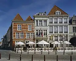 Hotel de Draak is the oldest hotel in the Netherlands founded in 1397 and located in the historic center of Bergen op Zoom city. The current building is from 1500 and is a protected monument. [1][2] The ground and first floor date from this period and were built in late-gothic style.[2] The current front dates from the 19th century, in which the original crow-stepped gable was replaced with a cornice.[2] It currently has a mansard and hip roof.