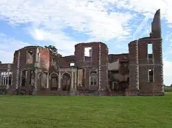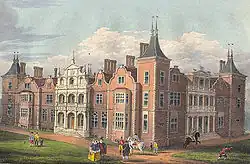 In the churchyard of nearby Maulden Church, the advowson of which was owned by the Bruce family,[7] is the Ailesbury Mausoleum, the earliest free-standing mausoleum in England,[8] built in 1656 by Thomas Bruce, 1st Earl of Elgin in memory of his 2nd wife, Lady Diana Cecil.[9] The Bruce family resided in the house until Thomas Bruce, 3rd Earl of Elgin, 2nd Earl of Ailesbury went into exile on the Continent in 1696 on account of his loyalty to the deposed King James II of England (1685-deposed 1688, died 1701).