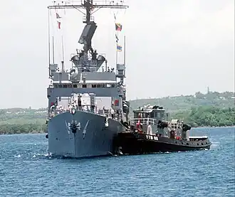 ![]() Houma (YTB-811) assists USS Talbot (DEG-4) into her berth at Naval Station, Roosevelt Roads, Puerto Rico, 14 June 1984.