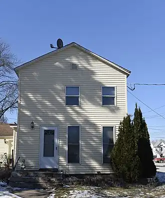 This is one of five Greek Revival houses in Maquoketa that represent its earliest extant houses built during its early growth period.[2] Built in about 1855, it features a gable end facade, cornice returns, and slightly pedimented framing on the door and window openings. Most of these features have been subsequently covered by siding. This property was bought by Jonas Clark from John and Eliza Goodenow in 1850. Three years later they ran against each other for mayor with Goodenow winning 32–17.[2] Clark, who was one of the first settlers here, worked as a shop keeper and a stable keeper and would go on to represent Ward 4 as an alderman.