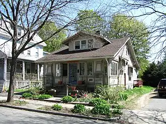 The House at 18 Park Street, also known as the Clarence A. Van Derveer House, is a historic house at 18 Park Street in Wakefield, Massachusetts. The 1+1⁄2-story Craftsman/Bungalow style house was built in 1922 by Clarence A Van Derveer, a real estate broker who lived next door and subdivided his lot to build this house. It has classic Craftsman features, including exposed rafters under extended eaves (which shelter a porch), and paneled porch pillars and rails.[2]