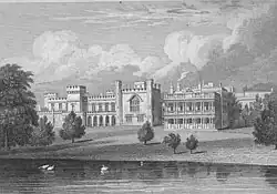The younger branch of the family elevated their status through several beneficial marriages. In the late 13th century, William de Stanleye married one of the coheiresses of Philip de Baumvill.[13] A century later, the family split into two branches, with the elder son William inheriting the Baumvill-derived family seat at Stourton, Cheshire and by marriage acquiring near-by Hooton, from whom derived the senior branch of the family that came to be referred to as the Stanelys of Hooton.
