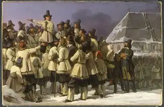 Hetman of the Crown Stanisław Żółkiewski held a triumphal entry by the Kraków suburb of the Royal Palace, leading with him the prisoners: the Russian tsar Wasyl IV Szujski, his brothers: Dimitri Szujski with his wife - Grand Duchess Ekaterina Grigoryevna, daughter Grigory Malyuta Skuratov and Ivan Shuysky Mikhail Shein, and Filaret, the non-canonical Patriarch of Moscow and All Russia. After early Commonwealth victories (Battle of Klushino), which culminated in Polish-Lithuanian forces entering Moscow in 1610, Sigismund's son, Prince Władysław IV Vasa, was briefly elected tsar.