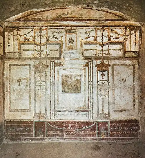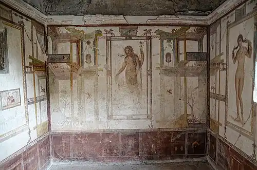 The house is painted throughout in the Pompeian Fourth Style and is valued because its decoration is all of a single style and single period, unlike many others that are often a mix of styles from different periods.[4]
