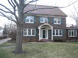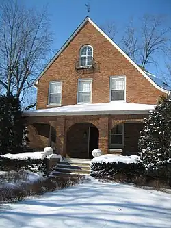 The Dr. Clark House is another contributing structure to the historic integrity of the Sycamore Historic District. The house stands at the corner of Lincoln and Main Streets in Sycamore. The home was constructed in 1936 for Dr. Clark, a Sycamore radiologist who worked at Sycamore Hospital. Clark lived in the home until 1970. The new owners added an addition to the house in 1996[4] The house was completed in Shingle style and its exterior construction is of brick. Dr. Clark was a radiologist at Sycamore Hospital.[4][6]