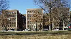 Senior House[89] is the oldest dormitory at MIT and was the first self-governing college dormitory in the United States.[90] Since its construction in 1916, it has served as the institute's first dormitory and on-campus fraternity, a mixed undergraduate and graduate dormitory, an all-graduate facility, a seniors' dormitory, and military housing during World War II. The L-shaped building is directly adjacent to the residence of the President of MIT. A tower at the center of the north side features neo-classical columns that reflect the architecture of the original MIT Cambridge campus.