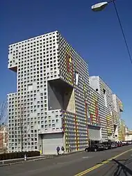 The building has been nicknamed "The Sponge", because the architect consciously modeled its shape and internal structure on a sea sponge.[70][72][73] Opinions on the aesthetics of the building remain strongly divided. Simmons Hall won the 2003 American Institute of Architects Honor Award for Architecture, and the 2004 Harleston Parker Medal, administered by the Boston Society of Architects and awarded to the "most beautiful piece of architecture building, monument or structure" in the Boston area. Simmons Hall was featured in the exhibit Inside the Sponge—Students Take on MIT Simmons Hall at the Canadian Centre for Architecture in Montreal in the fall of 2006.[74][75] On the other hand, the building has been criticized as being ugly,[76] a sentiment echoed in James Kunstler's Eyesore of the Month catalog.[77]