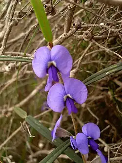 - ^ a b Spooner, Amanda. "Hovea trisperma". Florbase-the Western Australia Flora. Department of Biodiversity, Conservation and Attractions. Retrieved 22 July 2021.