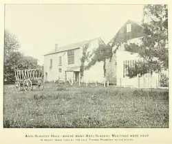 Abolition Hall (built 1856), left, and Maulsby Barn (built c.1795), right, about 1906