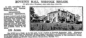 In 1912 Sir Jacob Preston, whose grandfather had purchased it, sold Hoveton Hall to the Reverend John Hare Beevor (1861-1914),[23] whose widow Susan continued to live there until 1919 when it was sold.