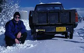 As an amateur astronomer, Brewington visually discovered or co-discovered five comets while manually sweeping the night sky with his home-built reflecting telescopes. He specifically designed his telescopes for the task, which included hand-grinding and polishing the 8 and 16-inch primary mirrors himself.[3] Brewington found his first comet from South Carolina in 1989. To improve his chances of additional finds, he and his first wife, Trudy Bland-Brewington, moved to southern New Mexico in the fall of 1990 and built a comet hunting observatory on a mountain ridge east of Cloudcroft.[4] From 1991 to 1996, the relocation paid-off with four more visual discoveries. Two of his New Mexico comets, 97P/Metcalf-Brewington[5] and 154P/Brewington,[6] have short-period orbits of about ten years.