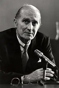 Baldrige was nominated to be Secretary of Commerce by President-elect Ronald Reagan on December 11, 1980, and confirmed by the United States Senate on January 22, 1981. He served from January 20, 1981, until July 25, 1987. He and William C. Redfield served as commerce secretaries for six years.[1] During his tenure, Baldrige played a significant role in developing and carrying out Administration trade policy. He took the lead in resolving difficulties in technology transfers with China and India. Baldrige held the first Cabinet-level talks with the Soviet Union in seven years, which paved the way for increased access for U.S. firms to the Soviet market. The world's most preeminent leaders highly regarded him.