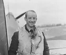 A serving member of the Royal Air Force Volunteer Reserve, Mayers was called up for service soon after the outbreak of the Second World War.[1] Allocated the service number 77976, he was commissioned as a probationary pilot officer on 11 March 1940 in the General Duties Branch.[4] After completing his training, he was posted to No. 601 (County of London) Squadron on 3 August, at the time based at Tangmere and operating the Hawker Hurricane fighter.[1][5] The squadron was well known for its upper-class pilots and was nicknamed the "Millionaire's Squadron".[3]