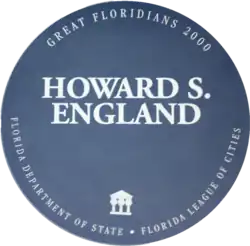 Howard England died in 1999. The following year he was recognized by the Florida Department of State and Florida League of Cities as a Great Floridian. The Great Floridians 2000 program was designed to recognize individuals who distinguished themselves through their philanthropy, public service or personal or professional service, and who have enhanced the lives of Florida's citizens. His Great Floridian 2000 plaque is located in the Park Manager's Office at Fort Zachary Taylor Historic State Park in Key West.
