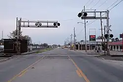 Two railroads, the Burlington Northern-Santa Fe and the Union Pacific, have mainline tracks that cross each other at Hoxie—the BNSF in a generally northwest-southeast direction, and the UP in a generally north and south direction. This same situation also occurs in Jonesboro, in Craighead County.