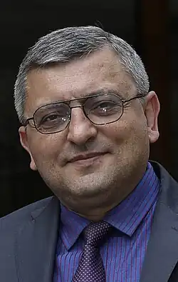 Hrachya Poladian (Armenian: Հրաչյա Արշակի Փոլադյան; born May 16, 1971) is the 3rd Ambassador Extraordinary and Plenipotentiary of Armenia to Iraq.[1] Mr. Hrachya Poladian, a career member of the Armenian Foreign Service, was appointed Ambassador of Armenia to Iraq by the presidential decree on October 25, 2018.[2] On November 29, 2019, Foreign Minister of Iraq Mohamad A. Alhakim received copy of the credentials of Ambassador Mr. Hrachya Poladian, the new Ambassador of Armenia to Baghdad and discussed the bilateral relations between the two countries and means of enhancing them to serve the interests of the two friendly peoples.[3]