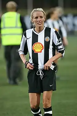 Hrefna Huld Jóhannesdóttir (born 25 October 1980) is an Icelandic former footballer who played as a striker.[2] She spent most of her career with KR and scored 179 goals in 220 Úrvalsdeild kvenna matches. In 2003, she won the Úrvalsdeild kvenna golden boot after scoring 21 goals in 14 matches.[2][3] She played college football for Auburn Montgomery,[4] and was named to the 2004 NAIA Women's Soccer All-American second team.[5] From 2000 to 2005, she made ten appearances for the Iceland women's national football team. Hrefna retired from football in 2012 due to mental health issues.[2][3][6]
