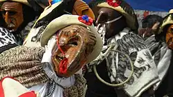 On the first three days of every January, masked men known as "huacones" perform a choreographed series of dances in the center of the village. There are two types of "huacones": those that wear traditional costumes and finely carved masks "inspiring respect and fear," and those that wear modern costumes, "embodying terror, sadness, or mockery." A small indigenous drum called the "tinya" beats out time to which the dance is performed. The dance is passed from father to son with the accompanying clothing and masks, but only those of good conduct and moral integrity are allowed to perform the dance ritual as "huacones".[1]