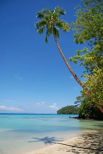 The island is covered with lush vegetation, much of which consists of coconut palms. There are also two important botanical gardens: the Ariiura Garden Paradise, which houses traditional Polynesian medicinal plants, and l'Eden Parc, where fruit trees from the rest of the world are cultivated.[14]