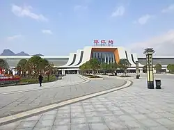 The city of Huanjiang is the county seat and a county-level city. It's located 30km away from Hechi City. In 2020, Xi Jinping gave instruction to the Maonan people of Huanjiang to work hard and alleviate poverty. [2] This in turn brought more investment into the city for development and a High Speed Rail was constructed and inaugurated in 2022 which connects the 2 cities to Nanning and Guizhou. Other modes of inter-city transportation are via coach, Passenger trains or private taxi.